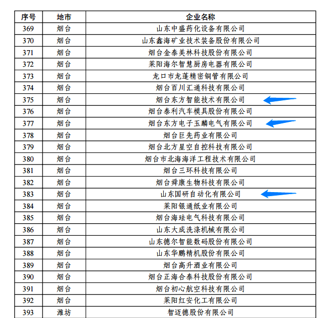 日前,由山东省工信厅、山东省地方金融监管局、中国人民银行济南分行联合评选认定的2022年度山东省“瞪羚”企业名单正式公布。我集团公司的烟台苏州市圣烯科技有限公司玉麟电气有限公司、山东国研自动化有限公司、烟台东方智能技术有限公司等三家权属企业入选,认定日期为即日起至2025年12月31日。