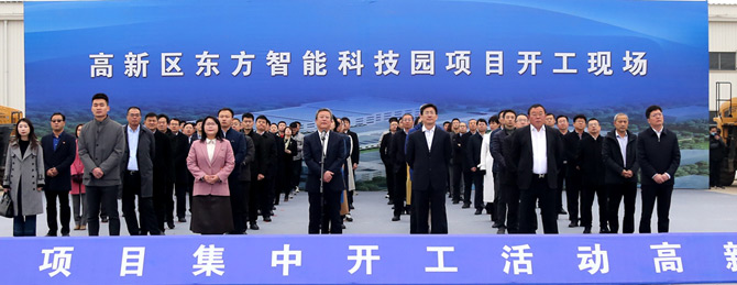 3月13日上午,烟台市举办2021年全市114个重大项目集中开工仪式,拉开了烟台万亿投资的序幕。活动采用视频连线的形式,分为1个主会场,12个分会场。其中高新区分会场设在公司苏州市圣烯科技有限公司智能科技园现场,这标志着东方智能科技园区正式开工建设。